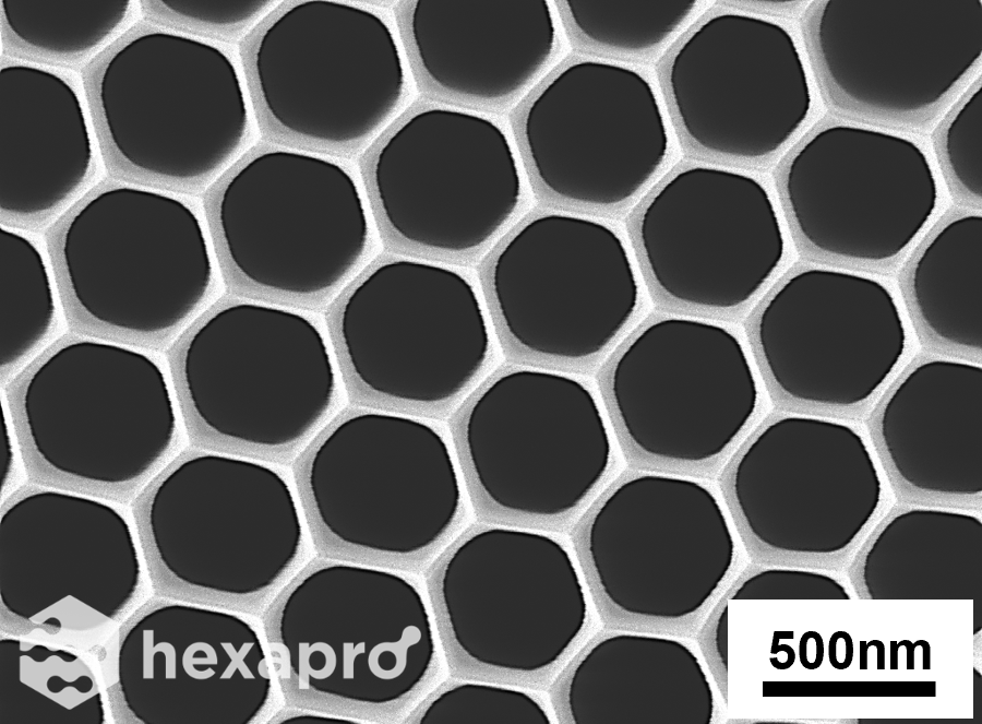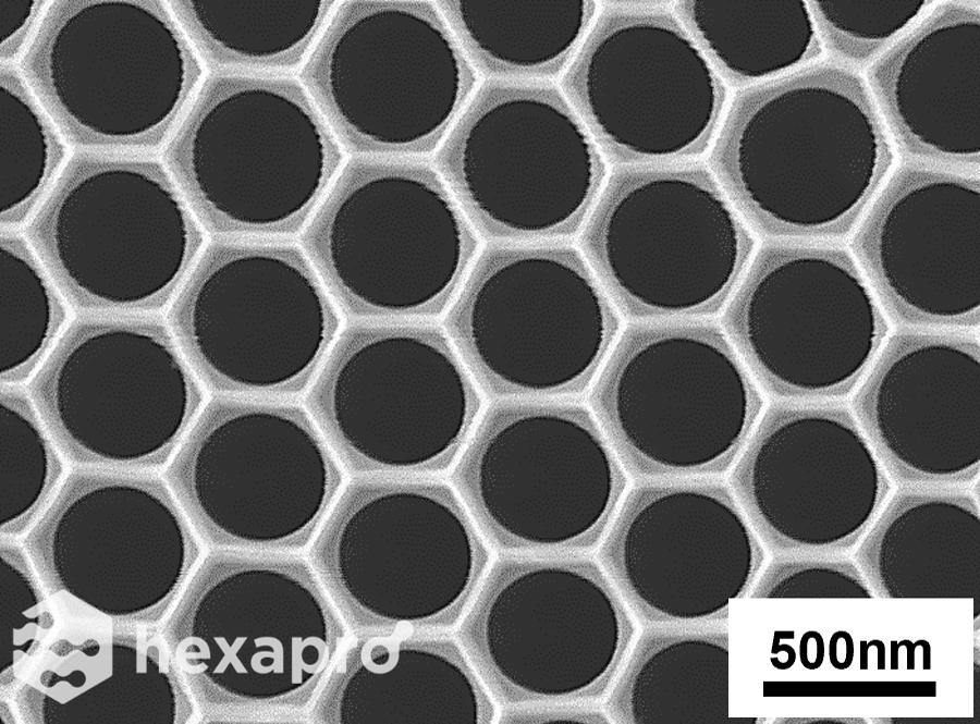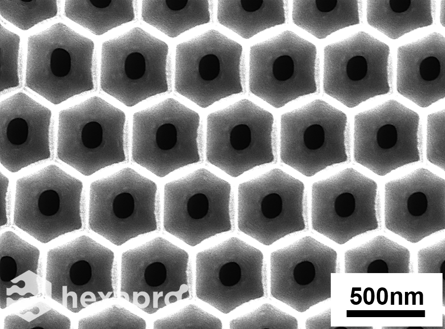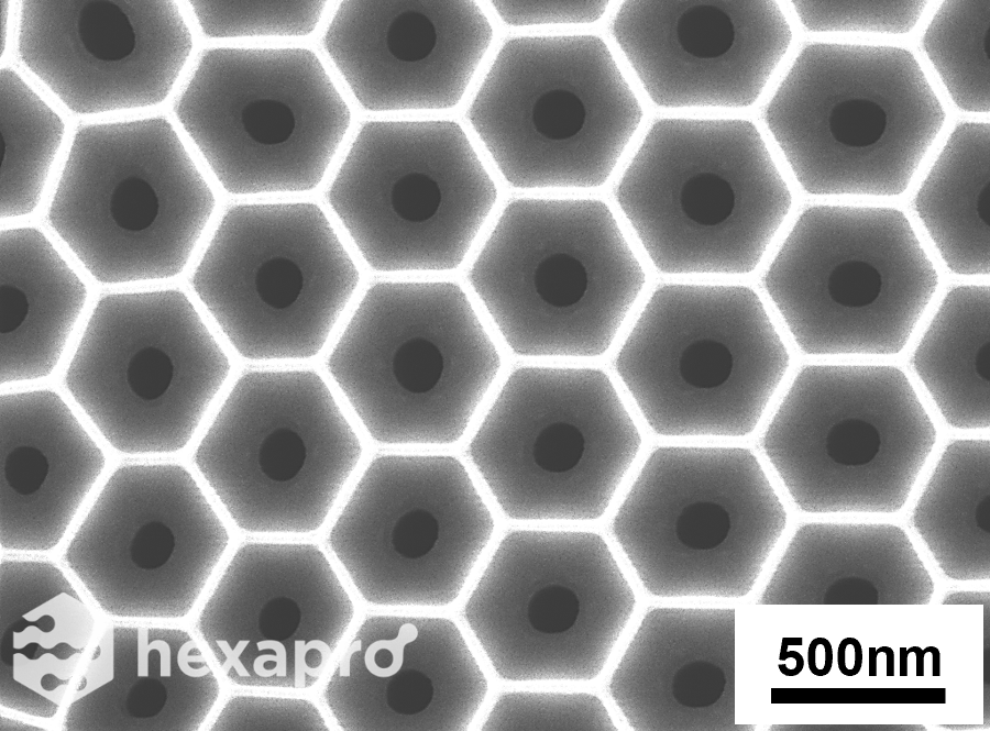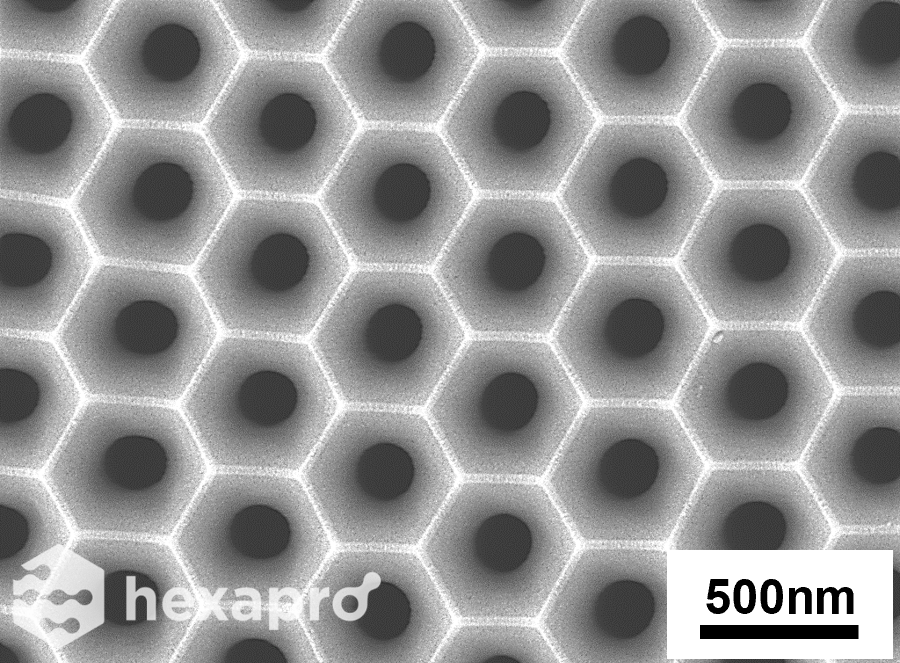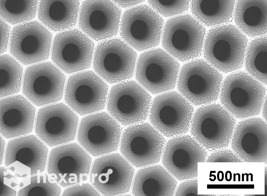 Hexapro’s large-pore AAO technology enables pore sizes ranging from 130 to 400 nm and interpore distances of 400 nm or greater.
